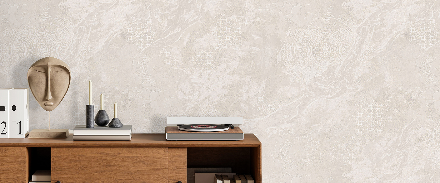 Коллекция обоев DECORINO в технике ALMAZ DECOR — это гармоничное сочетание классического орнамента и изысканной текстуры, создающее впечатление настоящей фрески.